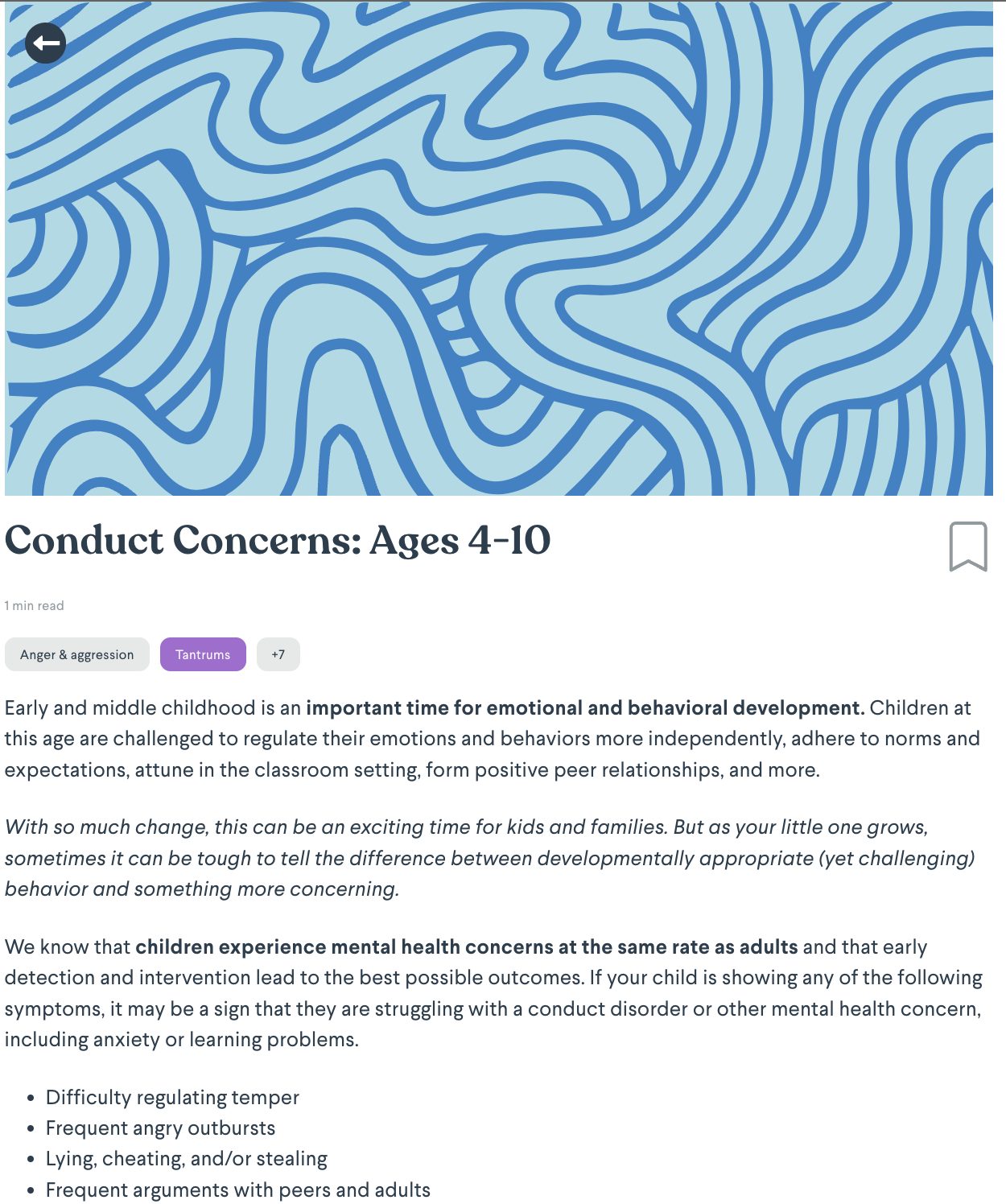 “It’s great that they provide a few resources for you to review. I had access to several short articles covering different children’s age groups and the challenges they may experience, like sadness and crying, worries and anxieties, and anger and aggression. I found these articles useful and think they would benefit people who would like to read more about specific challenges.”