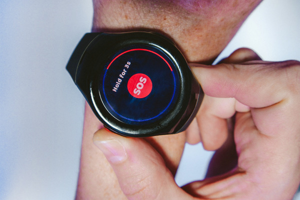 We recommend using the red SOS button on the side of the watch (not on the touch screen) to contact the monitoring center, as demonstrated below.